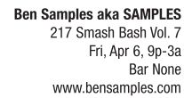 BAND SPOTLIGHT | Ben Samples aka SAMPLES Killinoize Productions of Springfield and Subsequent Vibes of Bloomington began a music series at Bar None several months ago and the success of the venture points to the growing popularity of electronic dance music in the capital city. The DJs, or more aptly, correctly and popularly called producers, mix on the fly, making impromptu live music without traditional instruments, but certainly creative music nonetheless. Ben Samples, a cutting-edge producer/DJ out of Denver, Colo., who simply goes by SAMPLES on stage, headlines this month with other performing producers MonDope (Springfield), Ghost Science (Quad Cities), Durt Russell (Bloomington), Blastfome (Bloomington), Trinketz (Peoria), and DJ KT (Springfield) filling out the bill. The event features “new genres of electronic music such as Glitch-Hop, Dubstep, Drumstep, Electro-House, Moombahton, Purple, Crunk, anything with BASS” and the hosts beef up the house ambience with extra speakers and lights. Dance on to the big bass beats. See also