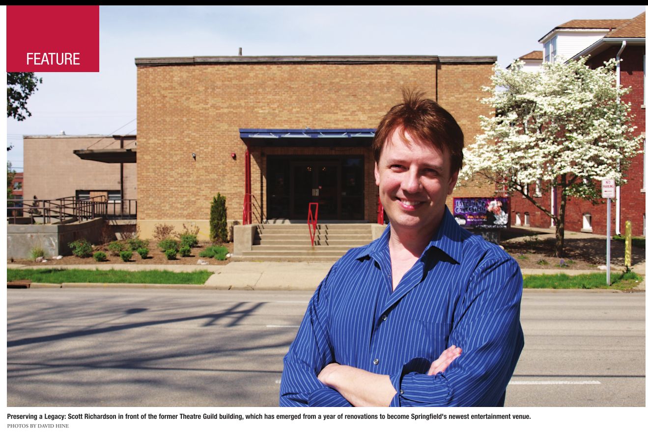 “I would say buying real estate is an emotional decision,” says Scott Richardson. “It’s probably not the wisest move, but sometimes you follow the heart. So we bought a theater!” Not just any theater. The building in question, at 101 E. Lawrence, had served as a focal point for local performing arts for more than half a century as headquarters for the Springfield Theatre Guild, beginning in 1951 until the rechristened Theatre Centre moved to the Hoogland Center for the Arts in 2004. Over the next several years the once-vibrant edifice on Lawrence went through a slow, inexorable process of deterioration.
