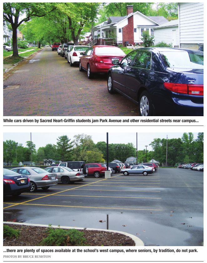 Sister Katherine O’Connor, president of Sacred Heart-Griffin, said that underclassmen are supposed to park on the West Campus lot. Seniors, however, are allowed to park on streets near the school.
