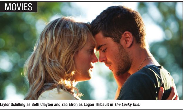 While the The Lucky One appears to be timely, with its inclusion of an Iraq War veteran, what drives it has been propelling love stories for as long as they’ve been around. Zach Effron is Logan, a soldier who’s survived three tours of duty and believes that a picture of an angelic blonde he found while in battle is his good luck charm. With the words “Be Safe” on the back and the fact that he’s still in one piece, who could blame him for thinking this, or for trying to find out whom the guardian angel in the picture is. Using the Internet to help identify the lighthouse that’s in the background (How did people in the movies ever find out anything before the invention of the Internet?), Logan sets out for Louisiana where he’s able to track down Beth (Taylor Schilling), a luminous woman who’s conveniently single and happens to have a son (Riley Thomas Stewart) who’s as cute as a puppy dog… under a wagon… in a rainstorm.