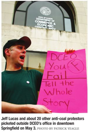 The Heartland Coalfield Alliance, a coalition of several Illinois environmental groups, gathered in Springfield on May 3, protesting outside the offices of the Illinois Department of Commerce and Economic Opportunity. The object of the protesters’ ire is a school curriculum titled “From the Coal Mines to the Power Lines,” which DCEO offers free of charge to Illinois schools. While DCEO says the curriculum is mandated under state law, the alliance claims it paints a rosy picture of coal mining, pollution and the coal industry.