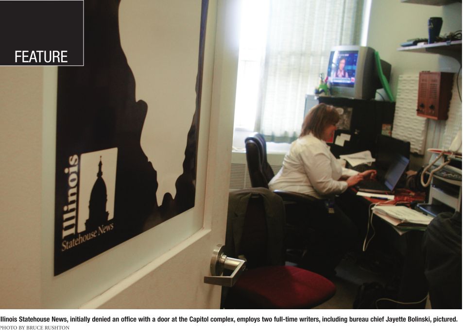 Illinois Statehouse News was not immediately embraced by the Illinois Legislative Correspondents Association, which decides whether organizations will be granted office space in the Capitol complex.