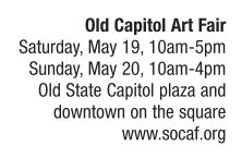 One-of-the-most popular spring soirees in our area, the Old Capitol Art Fair is always a fun and inspiring weekend of fine art and community camaraderie. Head to downtown Springfield Saturday or Sunday to view or purchase original wares by juried artists from around the country. There’s something for everyone -- jewelry, sculpture, photography, glassware, pottery, wood, metalwork, oils, watercolors and more. There’s also a children’s tent where kids can purchase a piece of art for a small price. The food is always good, the entertainment amazing. This year, you might want to check out and purchase the new book, Five Decades: The Springfield Civic Art Collection. The publication highlights the civic art collection amassed since the fair’s beginning in 1961. Visit www.socaf.org for a wealth of information about the Fair, including where to park.