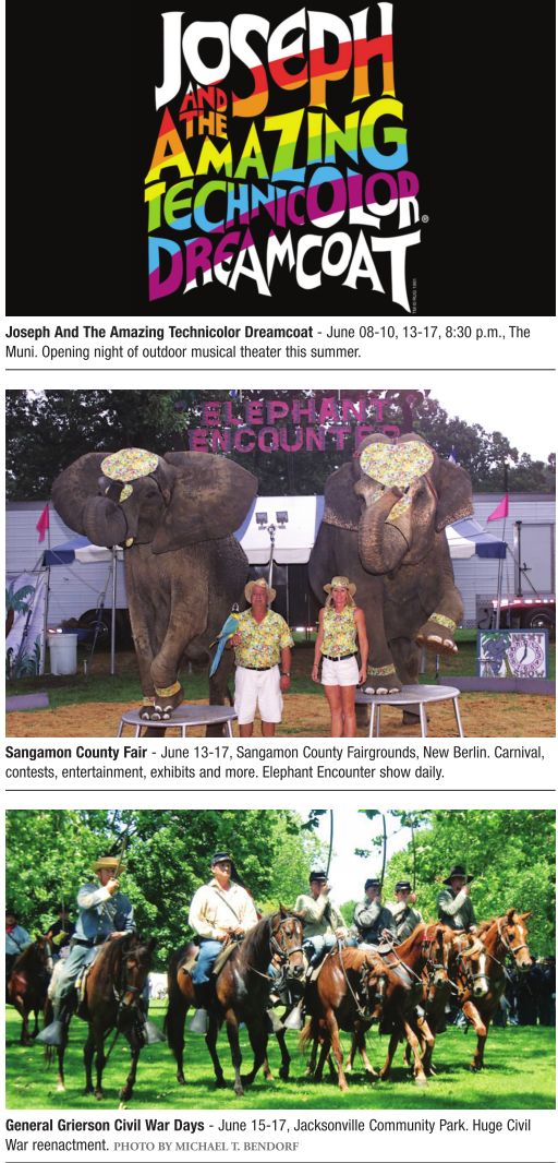 History Comes Alive Ice Cream Social Jun 14-Aug, 5:30-7pm, Join Abraham and Mary Lincoln every Thursday. Music by Lincoln Troubadours. Cold Stone Creamery ice cream for purchase. Vachel Lindsay Home State Historic Site, 603 S. Fifth St. 524-0901.