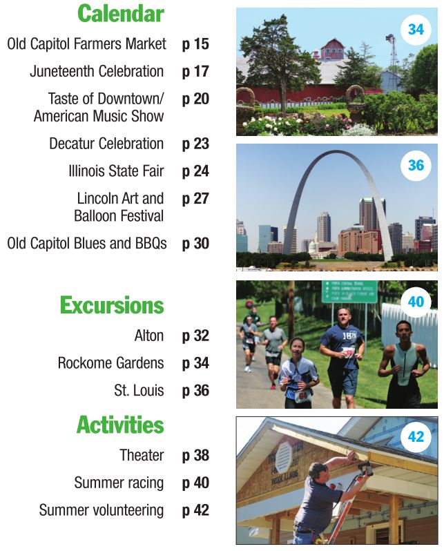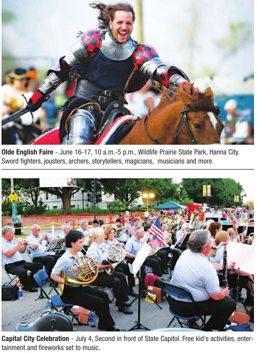 Lincoln and Shakespeare Jun 15 and Jun 23-Sep 1, 5pm, Saturdays (except June 16 and Aug. 18), Theatrical program with scenes from Shakespeare’s plays alongside Lincoln’s words. Old State Capitol, 785-7960.