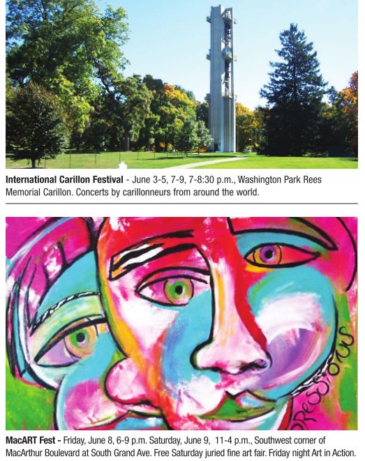 MacART Fest Jun 08-09, 6-9pm Fri, 11-4pm Sat, Free juried fine art fair on Saturday featuring over 50 exhibitors. (Friday night Art in Action, $30, $50 couples. See several artists at work.) macartfest.com. Southwest corner of MacArthur Boulevard at South Grand Ave.
