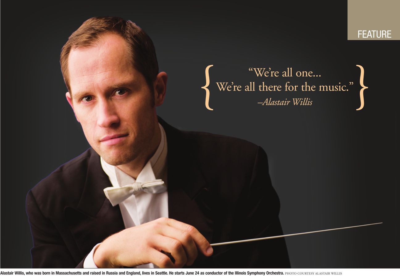 “The power of music can unite a community,” says Alastair Willis, brand new music director of the Illinois Symphony Orchestra. “That’s what we all need to be striving towards. It’s really about ‘how can we do this together?’” Willis’s appointment is the culmination of an arduous search which began in July 2010 with the announced departure of longtime ISO conductor Karen Lynne Deal. As a result, attendees of the orchestra’s 2011/2012 season were treated to an eclectic and sometimes dizzying mix of musical approaches as the five finalists (which included Donato Cabrera, Rei Hotoda, Kenneth Raskin and Andrew Sewell in addition to Willis) each took the opportunity to strut their symphonic stuff. Despite the fact that all the potential musical directors were eminently qualified, the decision to choose Willis for the position was not a difficult one.