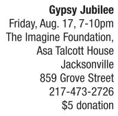 THE ARTS | Transcendent talent The Imagine Foundation in Jacksonville lives up to its motto, “Reaching out through the arts,” as it presents a night of other-worldly fun Aug. 17. Catered to adults 18 years and older, the soiree is called Dark Gypsy Jubilee. Besides an art exhibition, the “art experience,” as Executive Director Clare Lynd-Porter calls it, includes vendors, artists, fortune tellers and entertainers filling two floors of the historic home, once part of the underground railroad. Springfield’s Mary Tumulty paints henna tattoos for $1 per minute, Paul Jurgens paints live on Amanda Greive, Anna Mulch reads tarot cards for $1 a minute, Dr. Joseph Kozma reads palms, as he did in Germany during World War II, and Solatus performs glow in the dark Shibari rope work. Learn more about The Imagine Foundation and Asa Talcott House that houses TIF at www.imaginearts.org.