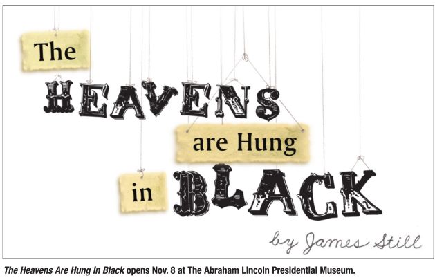 The Abraham Lincoln Presidential Museum will premier a new play in the area called, The Heavens Are Hung in Black by James Still. This beautifully written historical piece paints a picture of our greatest leader in a time of personal and professional crisis – writing the Emancipation Proclamation in 1862. Directed by Phil Funkenbusch, the play presents on Nov. 8-10 and 15-17 at 7:30 p.m. and Nov. 11 and 18 in the afternoon. Contact the museum at 217-558-8934 or http:/alplm.org/ for information.