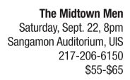 MUSIC | Sizzling Sixties The Midtown Men perform Sept. 22 at Sangamon Auditorium, UIS, as part of the Broadway Series. The four original Broadway members of the Jersey Boys -- Tony Award winner Christian Hoff, Michael Longoria, Daniel Reichard and Tony Award nominee J. Robert Spencer -- star in a concert experience celebrating the music of the ’60s. You’ll hear the sounds of the greats, such as The Beatles, Beach Boys, Motown, The Four Seasons and more. These guys were on the “Today Show,” “The Late Show with David Letterman” and “Dick Clark’s Rockin’ New Year’s Eve,” and their appeal only grows. See also