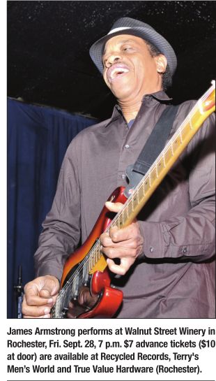 If you knew none of this about James and saw him perform (Friday at Rochester’s Walnut Street Winery), you’d be thrilled. James Armstrong is a treasure not to be missed, a fully realized, mature artist, still developing and building on skills with talent and purpose. Modest and confident, challenging and secure, the singing, songwriting guitarist, known as The Ambassador of the Blues, delivers.