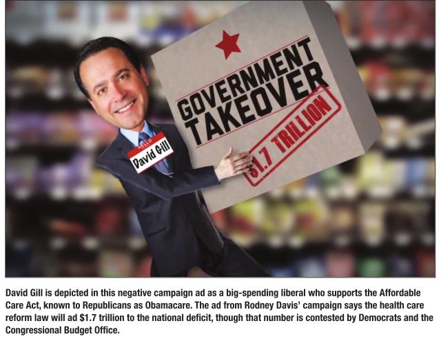 And so voters in Illinois’ new 13th Congressional District face a choice between polar opposites. On the left is David Gill, pushing an unflinchingly liberal agenda that focuses on the middle class and corporate influence in government. Rodney Davis stands on the right, beckoning with promises of a free-market utopia, lower taxes and budget by vice presidential nominee Paul Ryan. For Davis, government is the problem; for Gill, government is the solution. The race is heating up, with negative ads, strong fundraising and a televised debate scheduled just days before the Nov. 6 election.