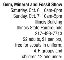 The Lincoln Orbit Earth Science Society presents the Gem, Mineral and Fossil Show in the Illinois Building at the state fairgrounds this weekend. Enter a world of all things stony and bony. The show features the skulls of Jane the T-Rex and Homer the Triceratops, a traveling exhibit from the Burpee Museum of Natural History, Rockford. There’s also a special hands-on exhibit, Rockin’ and Rollin’ on the New Madrid Fault. All the regular demos and activities such as the kid fossil dig will entertain and teach about the wonders of the geosciences. Food will be available for purchase.