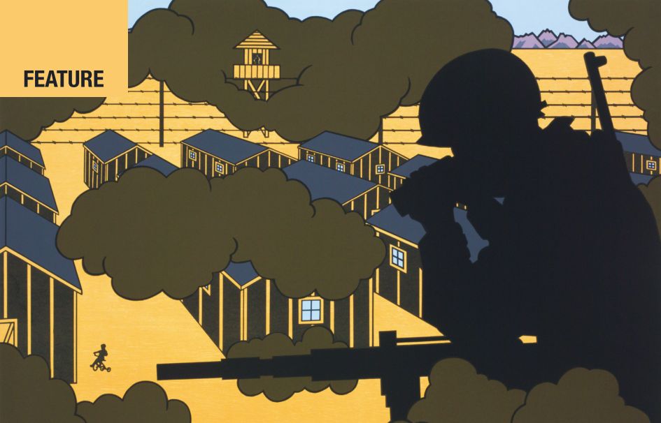 As a small child, Shimomura, a thirdgeneration American, and his family were displaced from home and friends in Seattle and transferred to Minidoka Concentration Camp in Idaho. “America Behind Barbed Wire” is an exhibition of prints and lithographs on display at UIS Visual Arts Gallery that recounts this story.