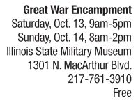 HISTORY | WWI up close The Illinois State Military Museum hosts a Great War Encampment to tell the story of the First World War. Experience trench warfare and a day in the life of the men who lived in the trenches during WWI. Reenactors in uniforms will demonstrate raids and skirmishes each day. Indoor and outdoor exhibits will amaze you if the museum building hasn’t already knocked you off your feet. The structure is breathtaking. Lectures take place both days at 11 a.m. and Saturday at 1 p.m. and 3 p.m. This event is sponsored by the Illinois National Guard and Militia Historical Society. See also