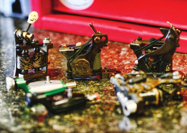 sanitize the tattoo machine. (Don’t call it a “gun,” though.) Artists