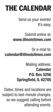 Out of the Darkness Community Walk Movers & Shakers Night Dec 20, 5-7pm, Guest bartenders. Bennigan’s, 700 E. Adams, 217-741-6063.