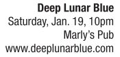 BAND SPOTLIGHT | Deep Lunar Blue Original and classic rock jam band Deep Lunar Blue commemorates 120 shows as a band with a four year anniversary celebration this weekend. The rollicking band of Shane Quigley (guitar, vocals), Casey Cantrall (guitar, vocals), J.J. Moffat (drums) and Jay Bohn (bass) plays around town on a regular basis, as well as at area clubs and various festivals. A DLB set list consists of original tunes by Shane and Casey augmented with covers by famous and familiar groups such as The Beatles, Grateful Dead, Rolling Stones, Pink Floyd, Talking Heads, Phish, Ween, Widespread Panic and Jack White. The band never repeats a set list or gives the same show twice. The dynamic and exuberant combo displays a talent for reaching for the shining stars while capturing the power of a rising moon within a musical performance of stunning emotion and compelling passion. Plans include continued performances, plus work on original material for recording, with an album release intended for later in 2013.