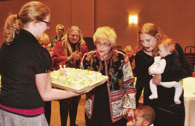 My mom is deeply loved not only by her family, but a legion of friends. Over 150 of them were in the atrium of First United Methodist Church shouting, “Surpise!!” as she entered. It took her almost the entire length of the party to personally talk with each one. The lunch was delicious and a pianist provided background music that added to the festive atmosphere.