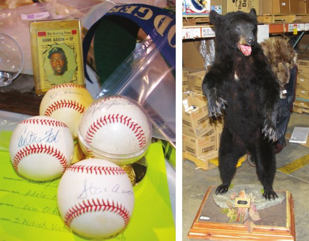 Pete Rose’s rookie baseball card. A stuffed beaver. A signed photograph of Ronald Reagan asleep on a hammock. Dozens of antique swords. A plastic tub filled with home pregnancy tests.