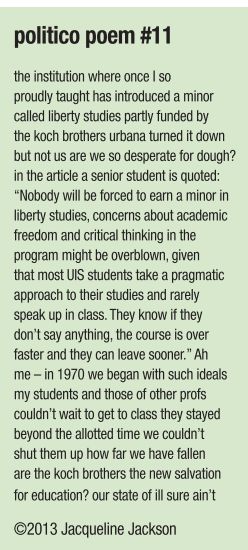 Third, let’s look at these brick and mortar stores that the politicos want to protect. I don’t know where Mr. Durbin lives, but here in Springfield, Mom and Pop have left the building (except for specialty shops, restaurants, bars and other areas where they can compete with the big guys) and the stores that took their places are large chains who, curiously enough, often exhort shoppers to “go to our website,” presumably to look for items not in their store. For example, barnesandnoble. com, although they charge sales tax, also charges less per item online than in the store. They’re undercutting themselves!