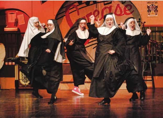 theatrical stage, beginning with the Muni’s 1991 production of Into the Woods, which featured both Gordons. “I was fortunate that Jack Connors (Channel 20’s then-general manager) and Les Vann (news director) realized that getting me out into the public had a payback to the station of humanizing me, making me more than just the guy who points at a screen. I thank them and owe them so much for allowing me the flexibility in my schedule to go out and be involved in things,” he says. In 1999, he and Claire started Gordon Productions in order to mount plays that were not being done by any of the established groups in town. Their first foray was Forever Plaid, a sendup of 50s and 60s “guy groups” like the Four Freshmen (the One Direction of their era). It proved so successful that they eventually revived it three additional times, including a 2004 production which was one of the very first shows to grace the main stage at the newly christened Hoogland Center for the Arts.
