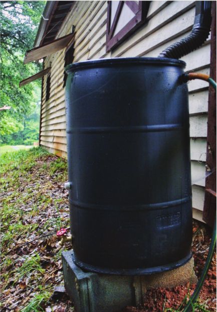 A more economical option is to make a rain barrel. For about $20 in supplies, one can make a rain barrel using a trash can or recycled plastic barrel, a spigot, washers, nuts, sealant, landscape fabric and some basic tools. All these items can be purchased at the local hardware store.