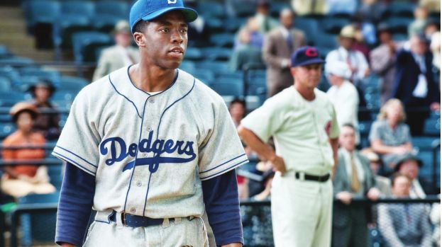 Perhaps the smartest thing Helgeland does is that. While some scenes play out with an ample serving of corn, he doesn’t set out to portray Robinson as a saint, but merely a man who finds himself at the crossroads of history, searching for the fortitude to navigate the uncharted social waters he’s set to embark on. Boseman is quite good in this regard. He convincingly shows how the ballplayer’s attitude developed over the course of the season. A bit arrogant at first, he comes to realize he’s in over his head as things progress, especially after an ugly incident involving Philadelphia Phillies’ manager Ben Chapman (Alan Tudyk) who mercilessly heckles him. Yet ultimately, he’s able to come to terms with the situation and endure. In underplaying the role, Boseman takes us inside the man, showing us his doubts and strength in equal measure, underscoring Robinson’s humanity from which his heroism grew.