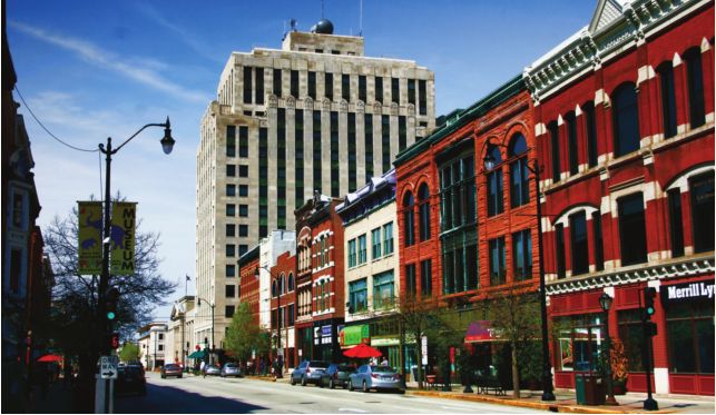 When a street wall is two or three times taller than the street is wide, the human eye can encompass the boundaries of the street space instantly and automatically. This is the Goldilocks sort of streetscape – not too open, not too enclosed, but just right. Springfield’s best example is Sixth street between Monroe and Adams, the capital’s best-by-far surviving example of 19th century commercial streetscape. There’s plenty to divert the eye, but the buildings’ height as much as their appearance make it a pleasant experience. That stretch of Sixth Street is just about exactly twice as wide it is tall. However different in absolute scale they might be, a great many of the places that people happily congregate, from the narrow byway of a medieval city to the grand ceremonial boulevard and the posh shopping street lined with boutiques, share these proportions.