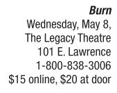 FILM | Must-see screening Touted as a “must-see, jaw-dropping” film, the documentary Burn will be screened at The Legacy Theatre on Wednesday evening, May 8. Burn tells the story of Detroit firefighters. But this first responder story is unique. Detroit is a city with more abandoned buildings and arson fires each day than cities twice its size. Los Angeles, with 4 million people, has 11 structure fires a day; Detroit at 713,000 residents has 30. Produced and directed by Tom Putnam and Brenna Sanchez, film crew embedded with Engine Company 50 for over a year. They captured the complexities of the firefighters’ lives in connection with their service to the crumbling city of Detroit. The film contains adult language, themes and brief nudity and is not recommended for children under 13. More info is at detroitfirefilm.org. The screening is supported by The Associated Firefighters of Illinois and Springfield Firefighters Local 37. See also