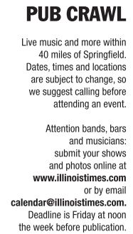 Scott and Bman Buckhart Tavern, Rochester, 9pm-12am. Karaoke Joe Bunkers, Illiopolis, 8pm-1am.