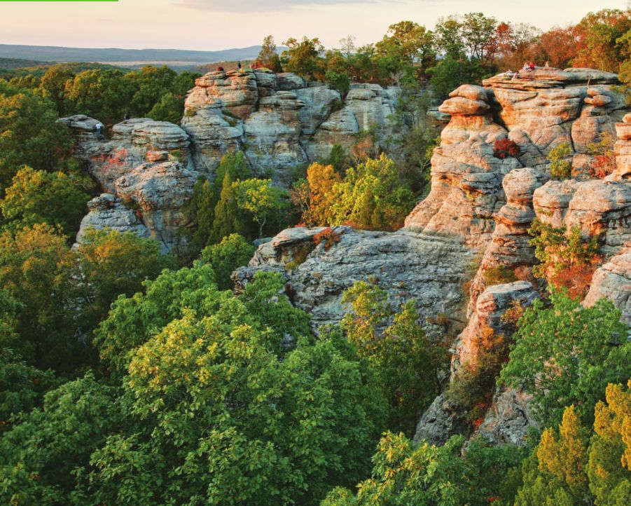 The guidebook, written by Larry and Donna Mahan (a retired Springfield teacher), is now available from Southern Illinois University Press, and features entries right for “those without extensive hiking or camping experience.” Trips cover well-known Shawnee attractions like Garden of the Gods and Cavein-Rock State Park as well as more secluded areas like the rugged Cedar Lake Trail System and its primitive camping sites.