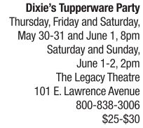 Dixie Longate of Mobile, Ala., brings Tupperware parties into the 21st century and into a whole new realm of entertainment with an onstage improv and comedy act that really is a Tupperware party. Admission to one of The Legacy Theatre performances will buy you an evening or afternoon full of laughter plus a chance to buy some great plastic products. Longate will host five hilarious shows May 30-June 2. This off-Broadway hit that won a Drama Desk Award nomination for Outstanding Solo Performance and that Longate is now taking around the country includes tales, heartfelt stories, audience participation and free giveaways. Information about this and upcoming shows is at www.atthelegacy.com.