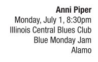 BAND SPOTLIGHT | Anni Piper Australia’s First Lady of the Blues rolls into town, rocking the house with her raw and raucous, right on, down and dirty, down under playing of the blues. Anni started on guitar at age 12, but switched to bass at 14 and started singing the blues. In 2004, she released Jailbait, her first recording of original music, and was promptly proclaimed Best New Talent at the 2005 Australian Blues Music Awards. While continually touring Australia she produced more records including Texas Hold ’Em (2007), Chasin’ Tail (2010 Blues Leaf) and in 2013, Split Second, along with Two’s Company, a compilation from her earlier Australian releases. Anni’s recent U.S. tour started in Florida, spent a week in Oklahoma, and now hits the Midwest for shows at Knuckleheads in Kansas City, the Alamo here and House of Blues in Chicago, before taking off east and ending up with several shows in Canada. Come see Anni and someday you can say, you saw her in the day. See also