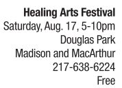 HEALTH | Notes to well-being Good music soothes the soul. Music will be a key component of the Healing Arts Festival Saturday, Aug. 17, at Douglas Park. Organized by local dynamo Bruce Williams and Dr. Paul Mach, DN, of Holistic Healthcare Alliance, natural healing and well-being are the focus of this event. Featured musical acts are Tater Tot at 5 p.m. and Halo Gin and The Isotopes at 7 p.m. Open Sandinista Jam runs from 8:45-10 p.m. Williams says that all musicians are welcome to come and join in the jam session. The public is also invited to come out and set up a table to sell art, jewelry or other craft items. Speaking between musical performances are Maryl Walters at 6 p.m. and Dr. Mach, DN, at 8 p.m. Walters will talk about prayer-based healing of today’s challenges, sponsored by First Church of Christ, Scientist. Mach will speak about spiritual, physical, emotional and mental balance.