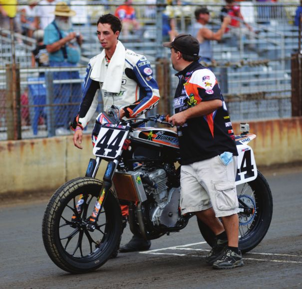 Beyond the obvious need for nerve, you must be in excellent physical condition. You must have an understanding family that doesn’t mind when you travel thousands of miles to risk your life. It helps to have a job with flexible hours that pays a lot of money, considering that a flat track bike can cost more than $25,000, the prize for first place is considerably less than $10,000 and orthopedic surgeons don’t work cheap.