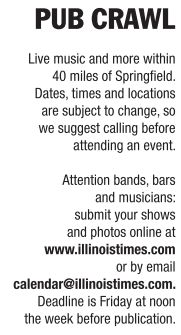 Find more details and gigs in our online calendar at www.illinoistimes.com.
