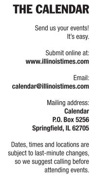 Fantastic Figurative Art Oct 24, Through Mar 2. 8:30am. Historical and contemporary body-based art by over fi fty artists from ISM collection. 217-782-7440. Illinois State Museum, 502 S. Spring St, 217- 782-7386.