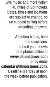 Find more details and gigs in our online calendar at www.illinoistimes.com. Are you a musican or band? Join our Band Directory.