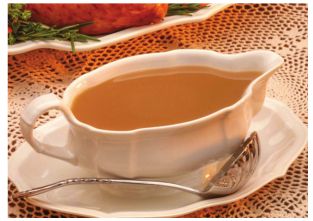 Pour the stock through a fine mesh strainer into a large container; discard the solids. Measure out the stock you need, reserving any extra for another use. Place the pan on the stove over mediumhigh heat. For each cup of stock that you use, add 1 tablespoon flour and 1/2 tablespoon turkey drippings/fat and/or butter to the pan. Cook, stirring constantly and scraping up the browned bits from the pan’s bottom, until no lumps remain and the flour/fat mixture is golden brown, 2-3 minutes. Cook for a couple minutes, stirring constantly. Whisk in the stock and bring to a boil, stirring constantly, until the gravy reaches the desired consistency.