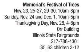 One of the most beloved events of the season, Memorial’s Festival of Trees, starts Nov. 24 at the Illinois State Fairgrounds Orr Building and runs through Dec. 1. View more than 150 Christmas trees and wreaths decorated by members of the community and marvel at the amazing handcrafted gingerbread village. Kids will delight in riding the miniature train and can visit with Santa or enjoy fresh, warm gingerbread cookies purchased from the bakery. Live entertainment is scheduled throughout each day and includes local high school, college and community choirs, musicians, dancers and more. See also
