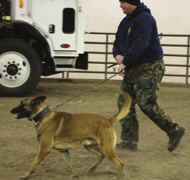 As before, the dog and handler move around the truck quickly for a preliminary run, then return for a