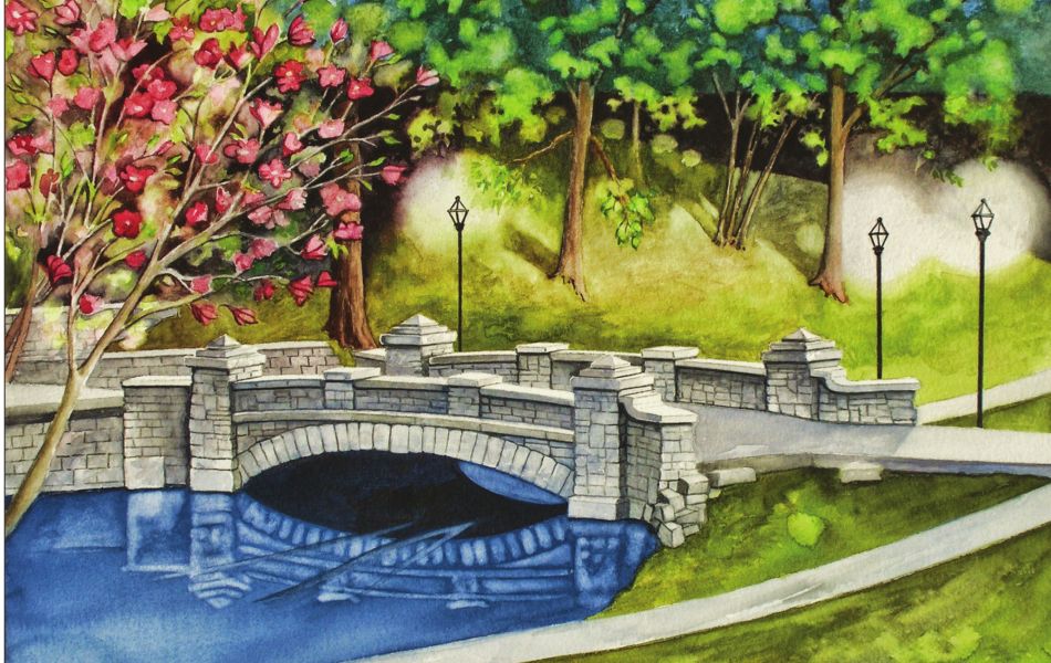 Local artist Stan Squires offers limited edition prints of three Springfield landmarks through March 31 as a fundraiser for the Salvation Army. Half of the proceeds go to the nonprofit. The illustrations include Lincoln Park’s stone bridge (pictured), Illinois Watch Company and Pillsbury Mills Flour Plant. Only 100 of the 11-inch by 14-inch prints on 16-inch by 20-inch double white mats are available. Squires retired after 29 years in advertising to focus on watercolor painting. With a bachelor’s degree in graphic design from University of Illinois, Squires attends 10 art shows a year. Awards include first place in the 2011 Lincoln Art and Balloon Festival, first place in the Children’s Art Fair at the Old Capitol Art Fair 2012, and second place for watercolors at the 2013 Illinois State Fair. Get all three landscape prints for $110. The artist will deliver free in town.