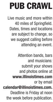 Find more details and gigs in our online calendar at www.illinoistimes.com. Are you a musican or band? Join our Band Directory.