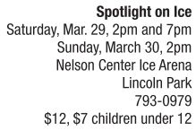 Springfield Figure Skating Club presents Springfield’s every own ice show on Saturday, March 29, and Sunday, March 30, at Nelson Center Ice Arena in Lincoln Park. More than 50 SFSC members, all ages and skill levels, will perform to musical ice versions of “Lion King,” “Hair Spray” and “Starlight Express.” This is a professionally produced show with some of the same effects you get at a show such as the Ice Capades, including spotlights, costumes and numbers by special guest U.S. and international men’s ice skating competitor Richard Dornbush. Tickets are available at area Schnucks, the Nelson Center and at the door.
