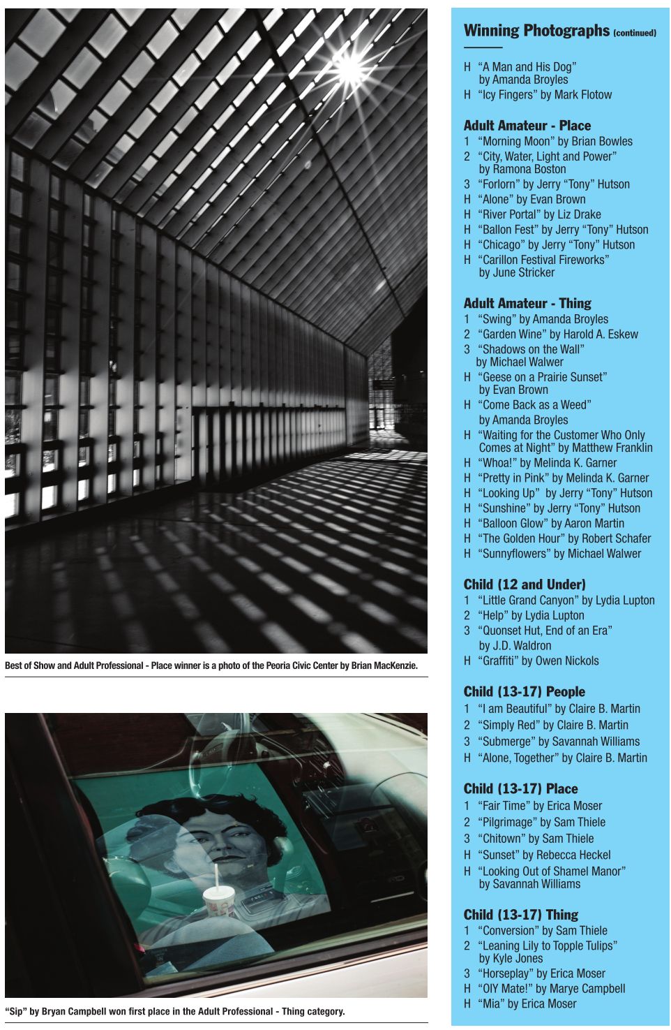 Three local professional photographers judged this year’s entries of nearly 400 images submitted by professional, amateur and children photographers from throughout central Illinois.