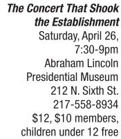 HISTORY | Monumental re-creation Saturday evening, April 26, University of Illinois Urbana-Champaign vocal artist and professor Ollie Watts Davis will re-create a historic performance at Abraham Lincoln Presidential Museum. Folks are eagerly anticipating this show based on the 1939 performance by renowned singer Marian Anderson who was barred for performing before an integrated audience so she sang in the open air at the Lincoln Memorial. Thousands watched her and the concert was aired coast-to-coast over the radio. You must register and have an e-ticket for this event. Visit presdientlincoln.illinois.gov. Museum will open at 6:30 pm., at which time the museum’s journeys and galleries will be open. See also