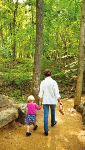 Upon your arrival, you’ll be lured to the beautiful outdoors. Nestled in a natural ravine, the museum’s wood and glass pavilions designed by architect Moshe Safdie are grouped around two spring-fed ponds and are linked by two signature bridges. It’s a stunning scene that entices visitors to explore more than 3.5 miles of trails. From sunrise to sunset, the trails provide access to sculptures, gardens, the spring for which Crystal Bridges is named, and a trail to downtown Bentonville.
