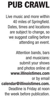 Find more details and gigs in our online calendar at www.illinoistimes.com.