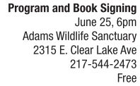 BOOKS | Illinois nature Naturalists Michael Jeffords and Sue Post will present a program on their newest book Exploring Nature in Illinois: A Field Guide to the Prairie State, foreword by Illinois Audubon Society Executive Director Tom Clay (University of Illinois Press, 2014). The 280-page book, loaded with color photographs and evocative descriptions of 50 of the state’s forests, preserves, prairies and parks and its wildlife, will be available for purchase. Jeffords is retired education/ outreach director for the Illinois Natural History Survey and was staff photographer for The Illinois Steward magazine. Susan Post is a retired INHS research scientist and was staff writer for The Illinois Steward magazine, and author of Hiking Illinois. See also